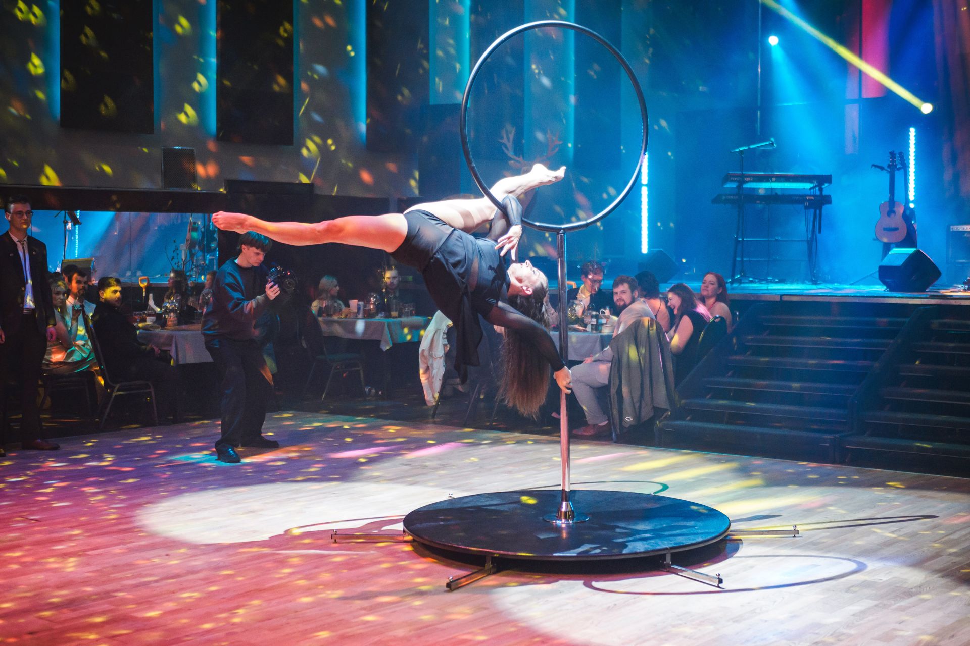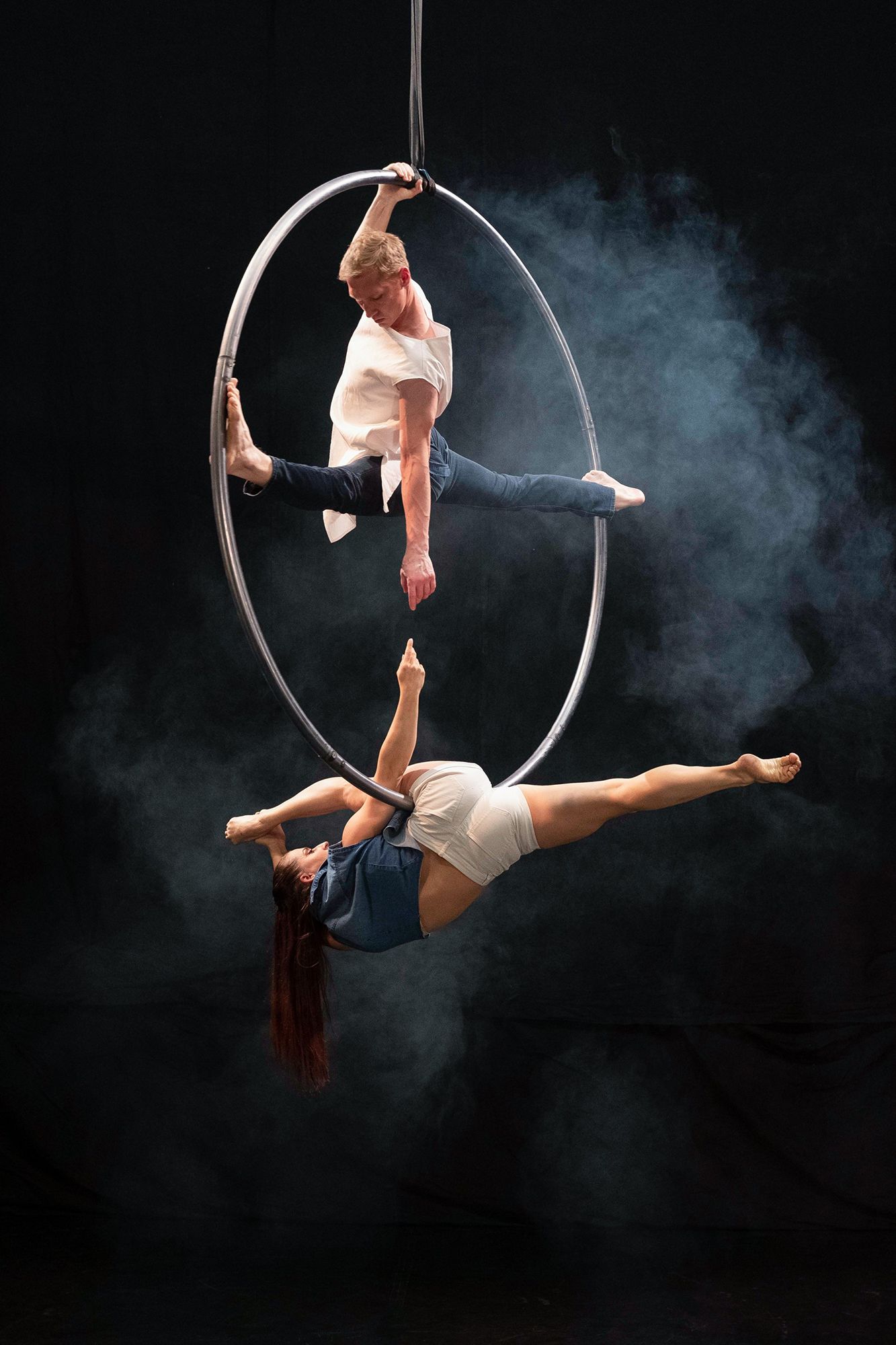 Originální duo vzdušné akrobacie na kruhu zavěšeném vysoko nad hlavami diváků. Dva akrobaté předvedou číslo plné obtížných prvků a naprosté důvěry, které nemá ve světě obdoby. Překvapte své hosty něčím opravdu vyjímečným.