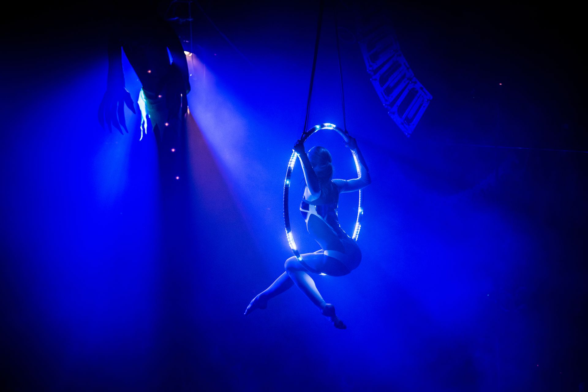 Vzdušné sólo obohacené o programovatelné světelné efekty, které ještě více podtrhnou pohyby zkušené akrobatky. Světelný kruh nabízíme jako samostatnou show, nebo improvizaci např. do prostor klubu, která doprovodí DJ a další dění na hlavní stage.