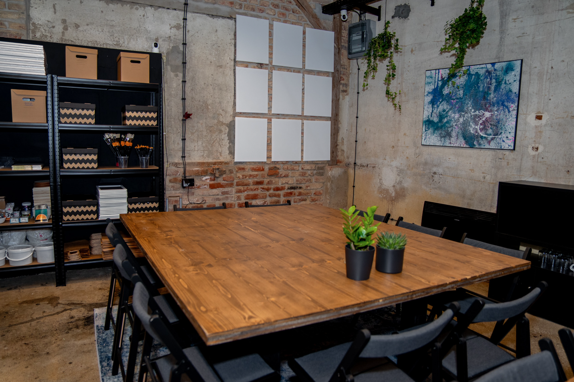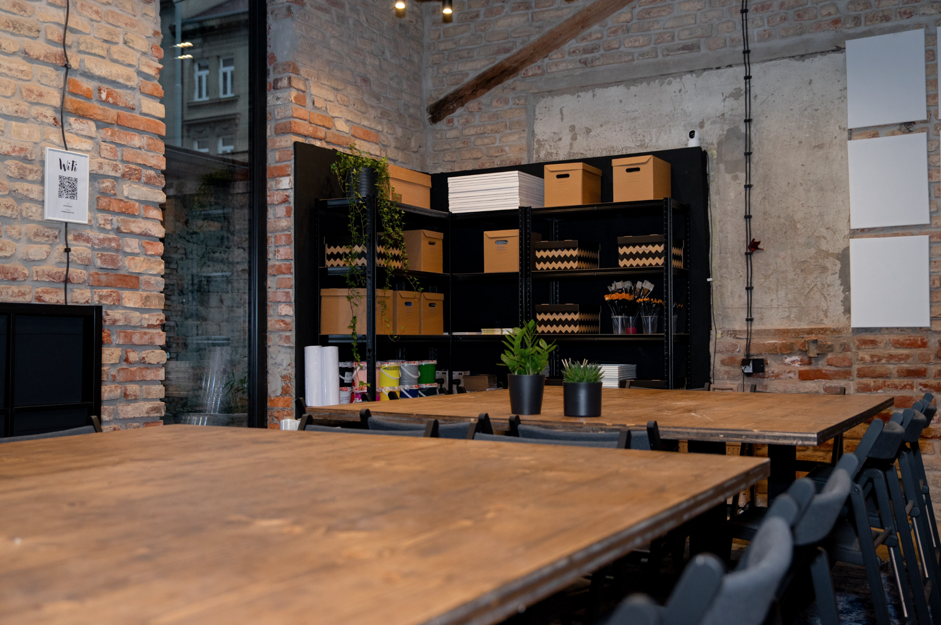 Prostor je možné si pronajmout a bude vám k dispozici projektor, reproduktor i další technické vybavení potřebné pro hladký průběh workshopů, schůzek či prezentací. Díky spolupráci s pivnicí Polepšovna, která se nachází přímo naproti, je možné zajistit drobné občerstvení i plnohodnotnou večeři podle charakteru akce.