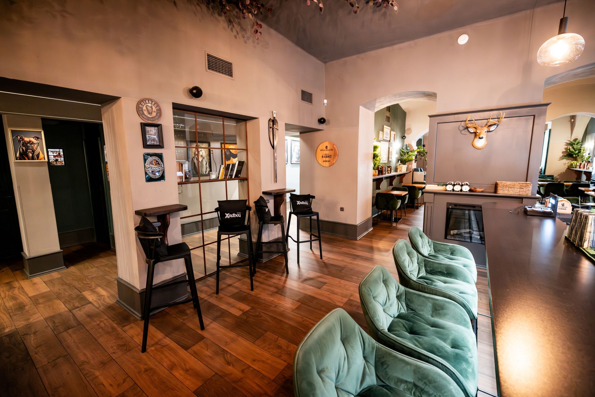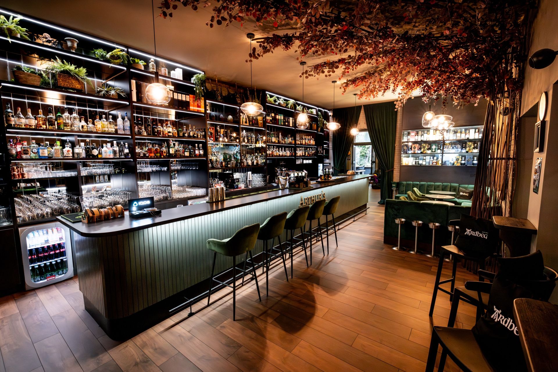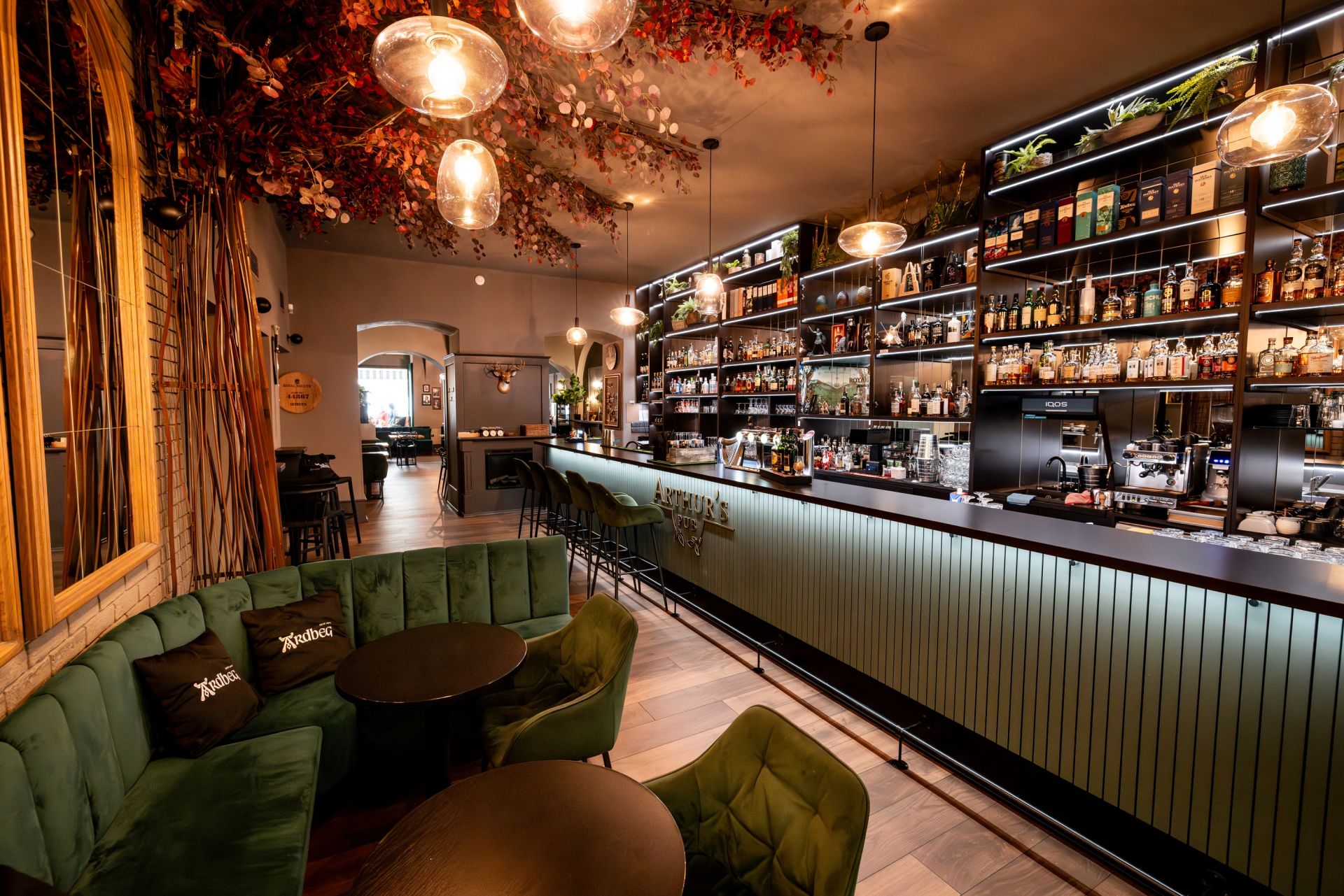 Možnost posezení přímo na prostorném baru, případně v útulném boxu s kapacitou 20 míst. Disponuje širokou nabídkou kvalitních destilátů. Zkušený personál vám poradí s výběrem, případně můžete vyzkoušet některou degustaci ze speciální nabídky.