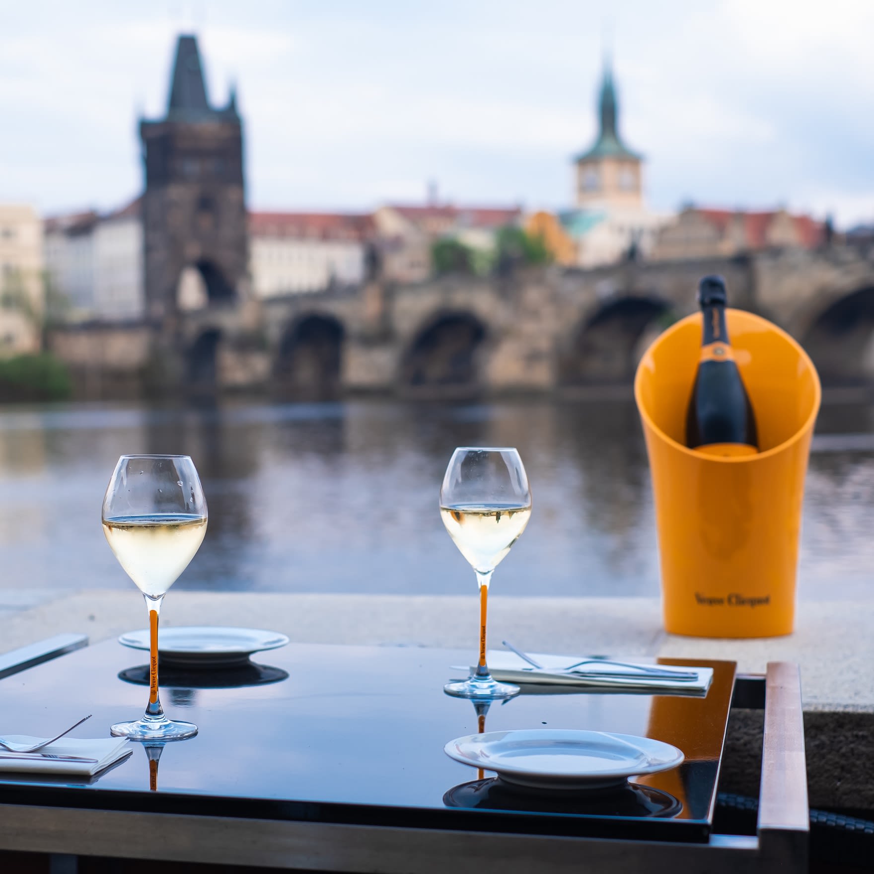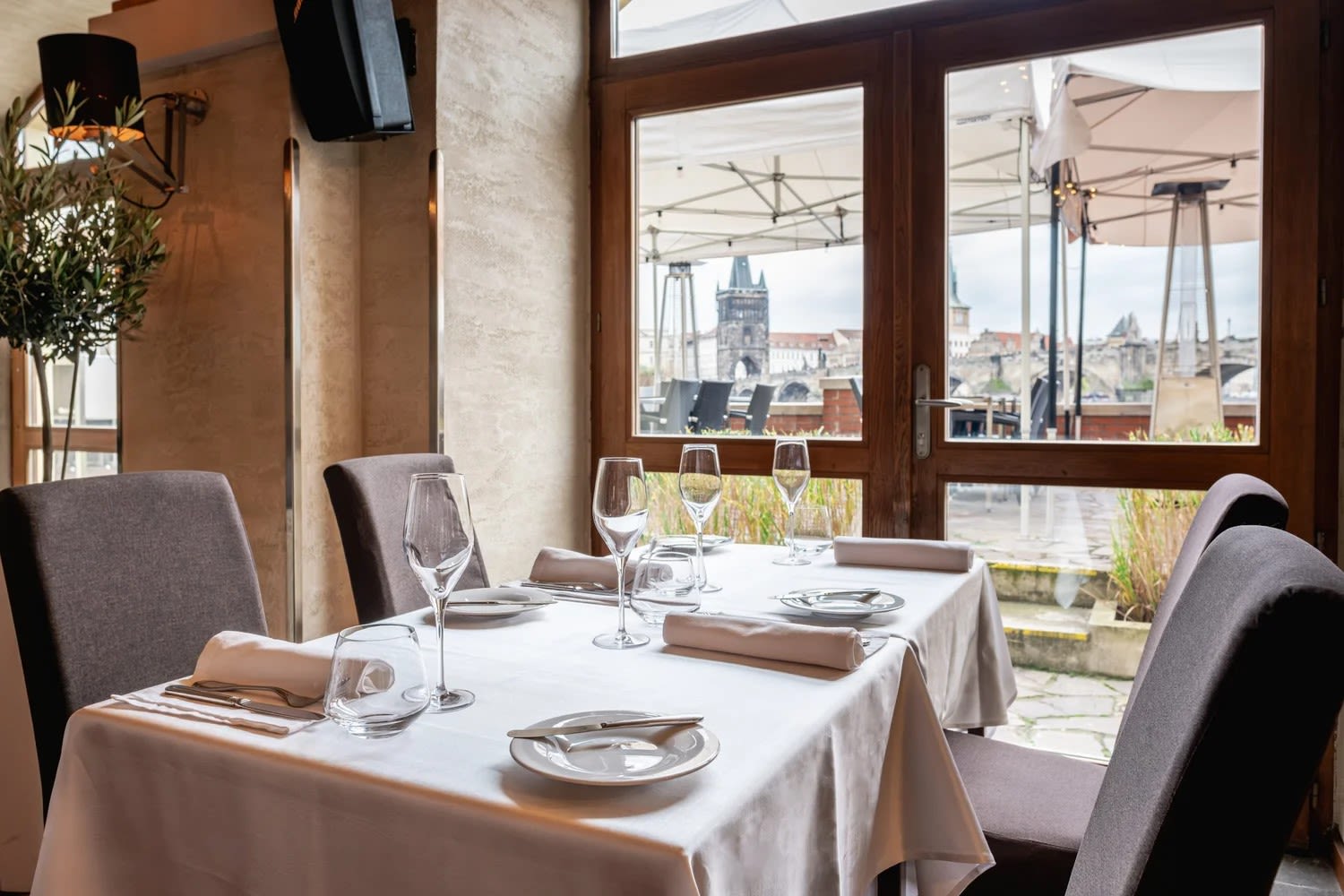 Dominantou restaurace jsou velká okna s přímým výhledem na Karlův most a Vltavu, která prostoru dodávají výjimečný charakter a přirozené denní světlo. Interiér je flexibilní a umožňuje variabilní uspořádání dle typu akce – od formálních večeří po firemní eventy.