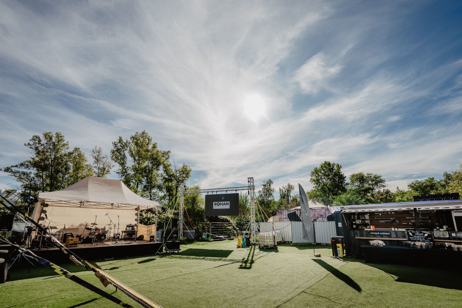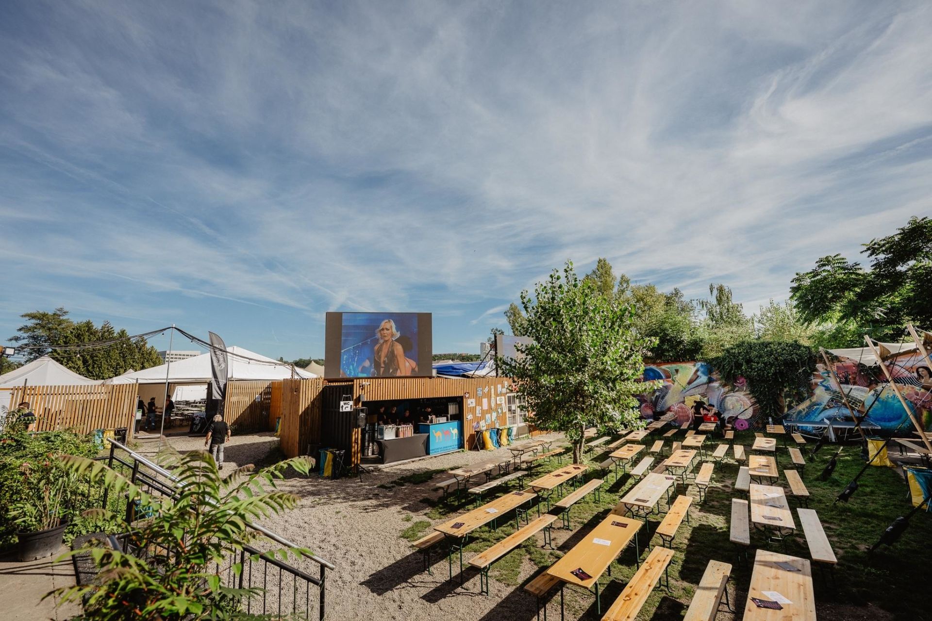 Prostor se nachází ve střední části areálu s dobrým přístupem k hlavnímu výčepu a na toalety.