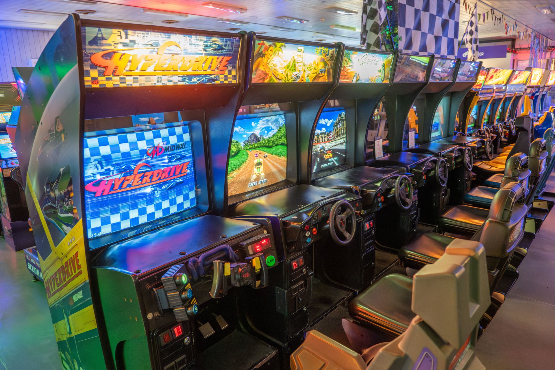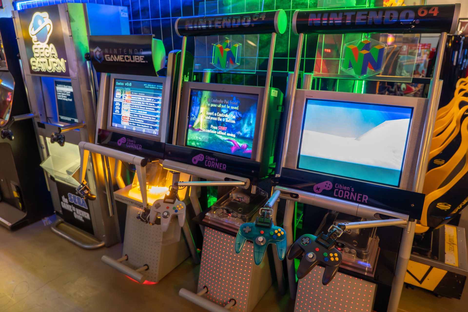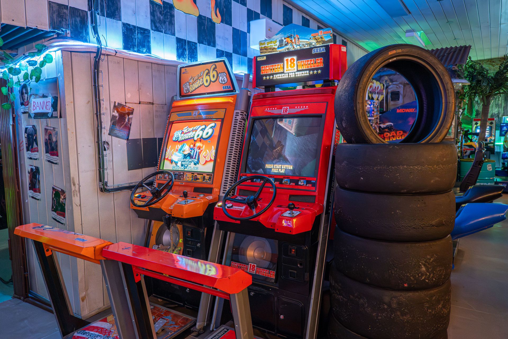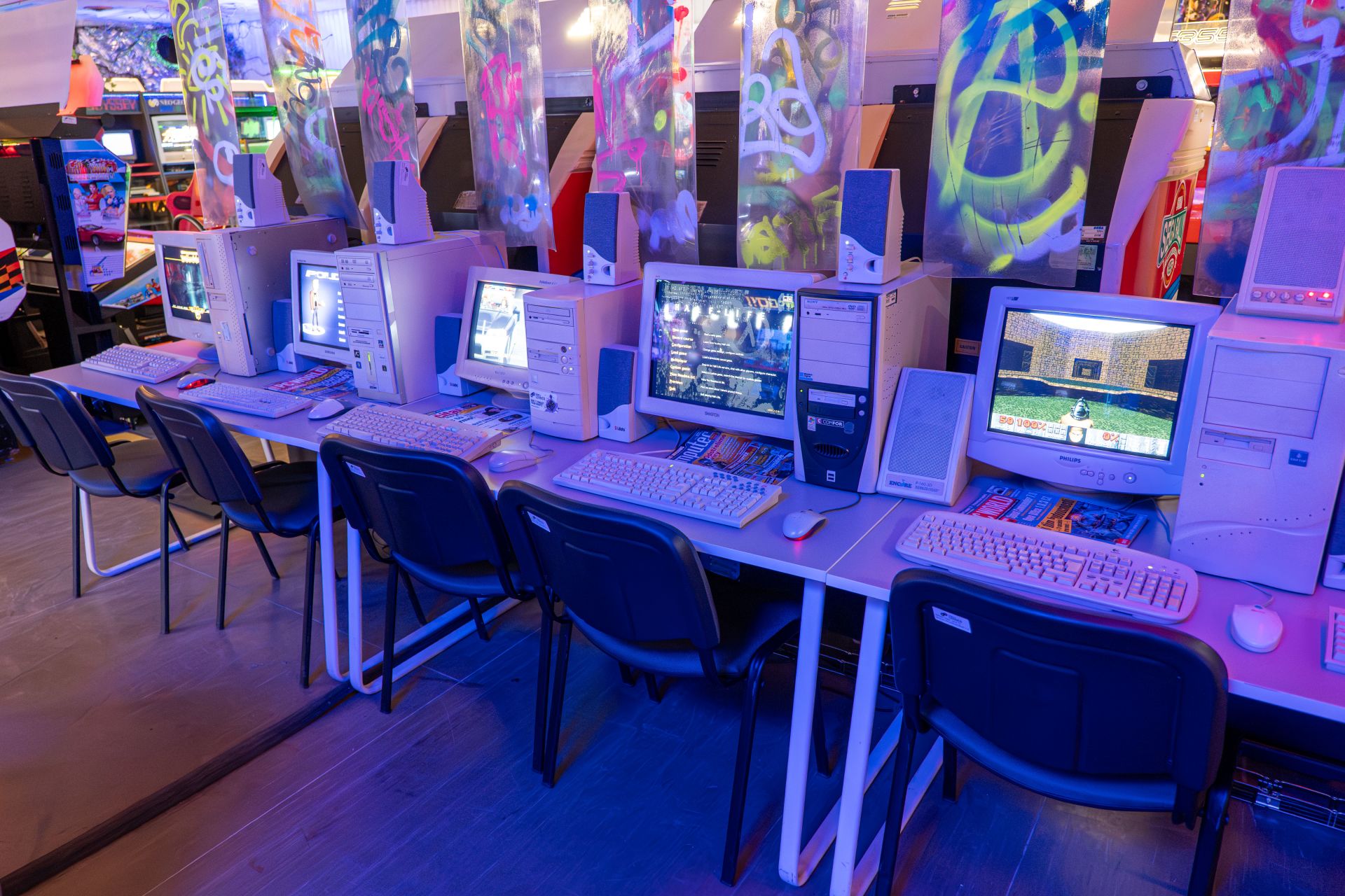 Arkádová herna ve stylu futuristického kyberpunku, kde najdete přes 180 videoherních mašin z celého světa od klasických po moderní.