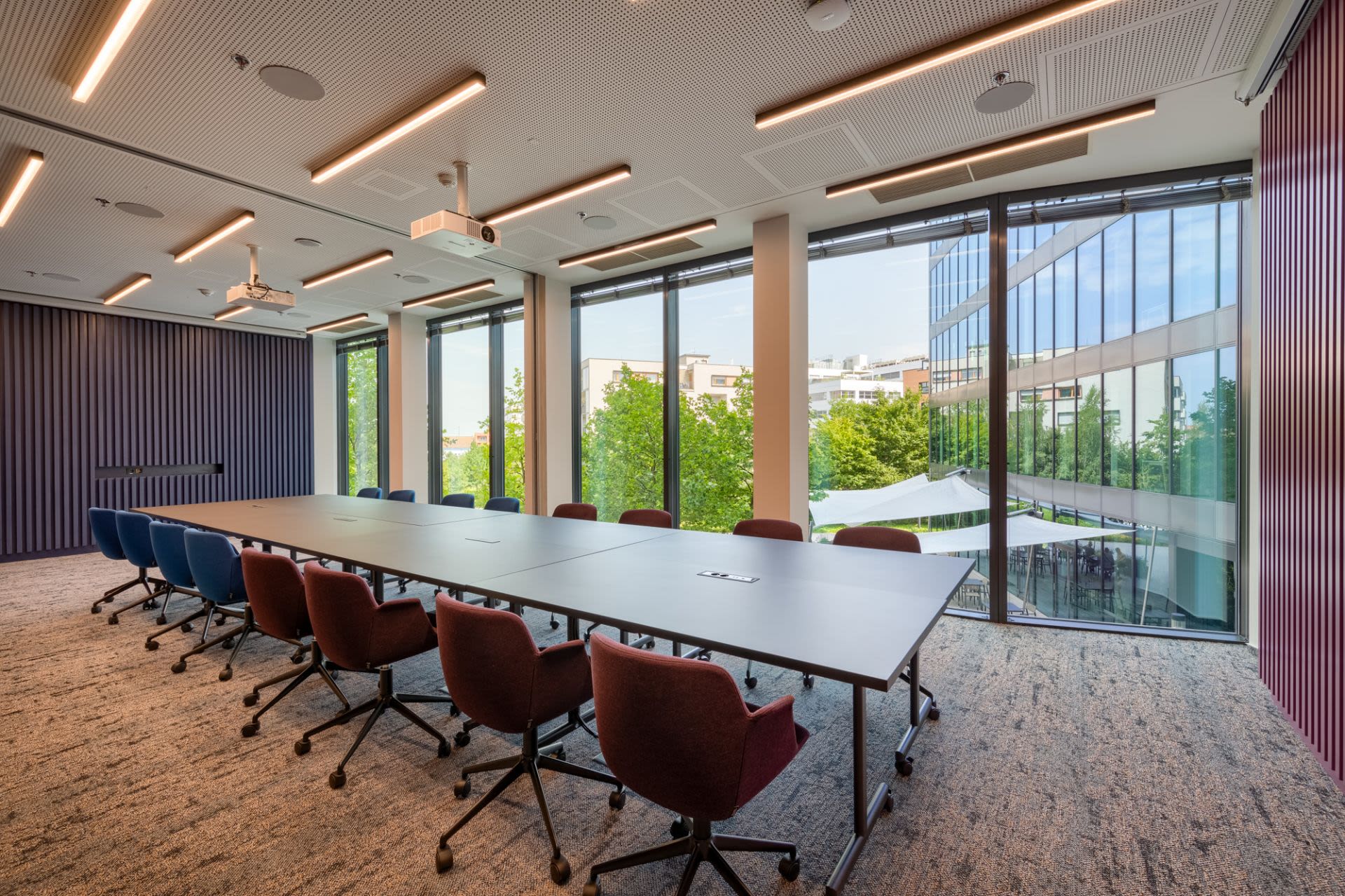 Reprezentativní školící a zasedací prostory s moderním technickým vybavením, ideální pro firemní prezentace, jednání a networking.