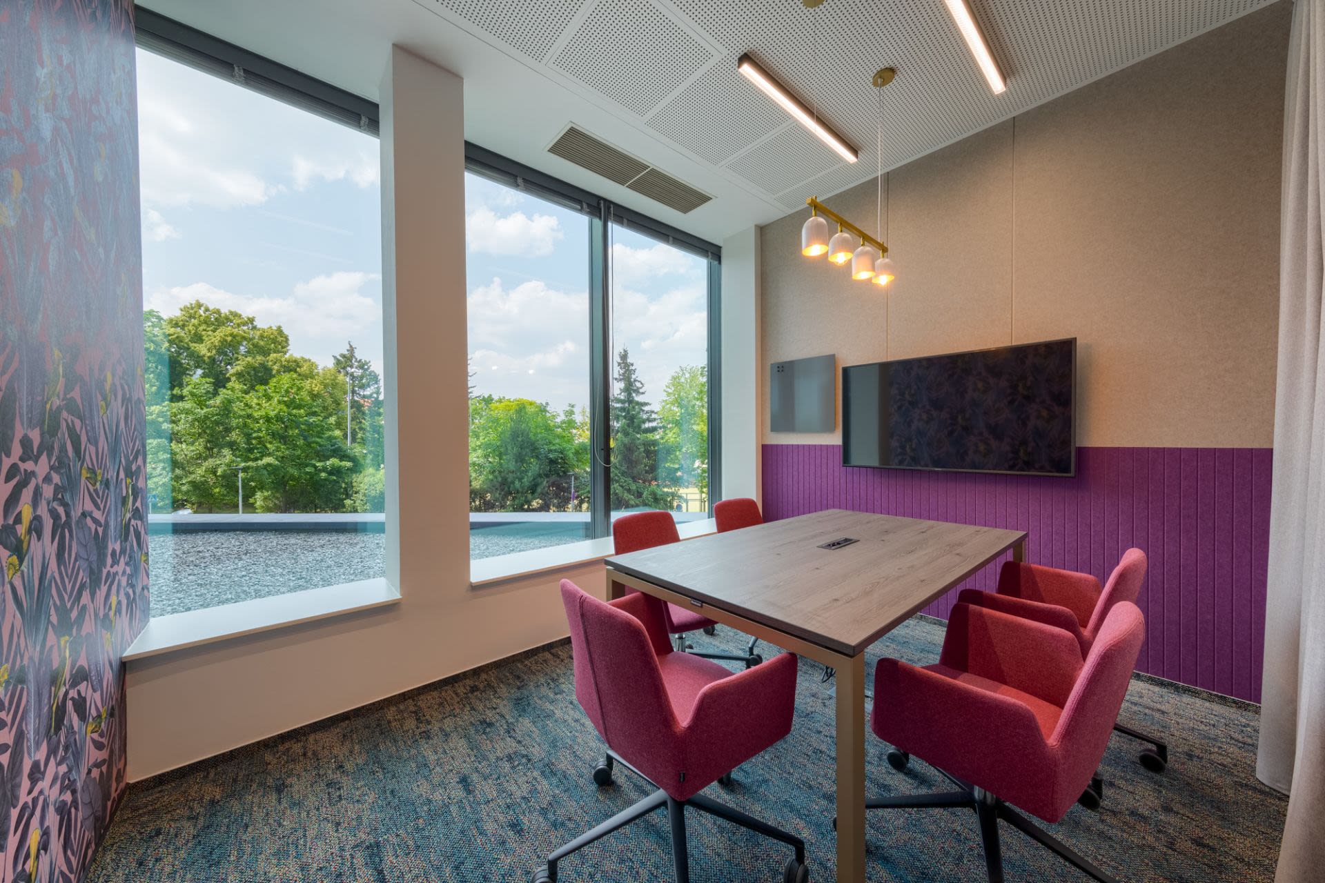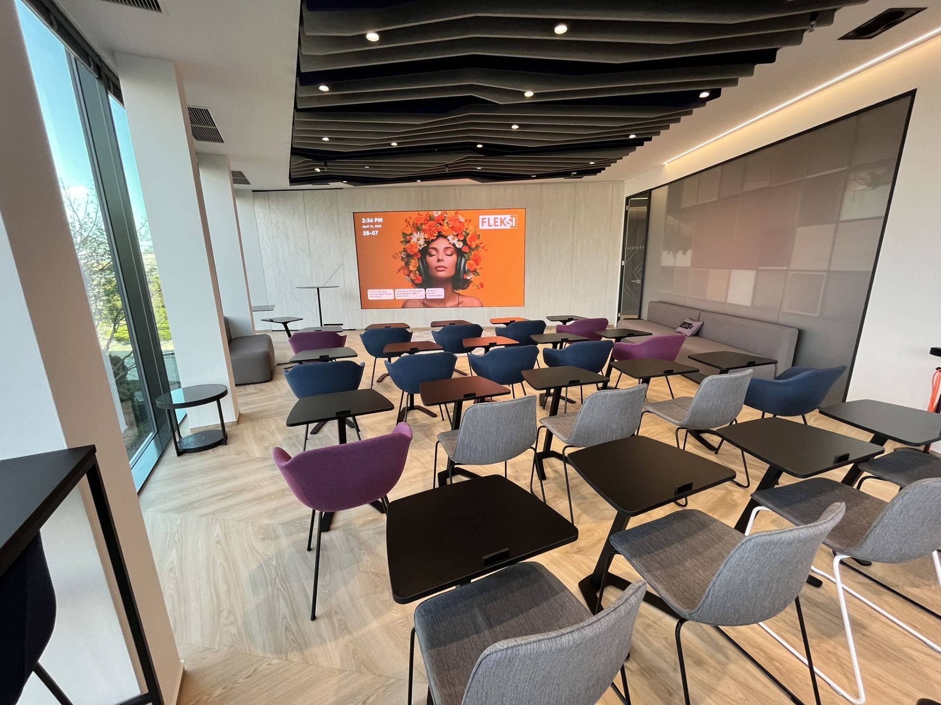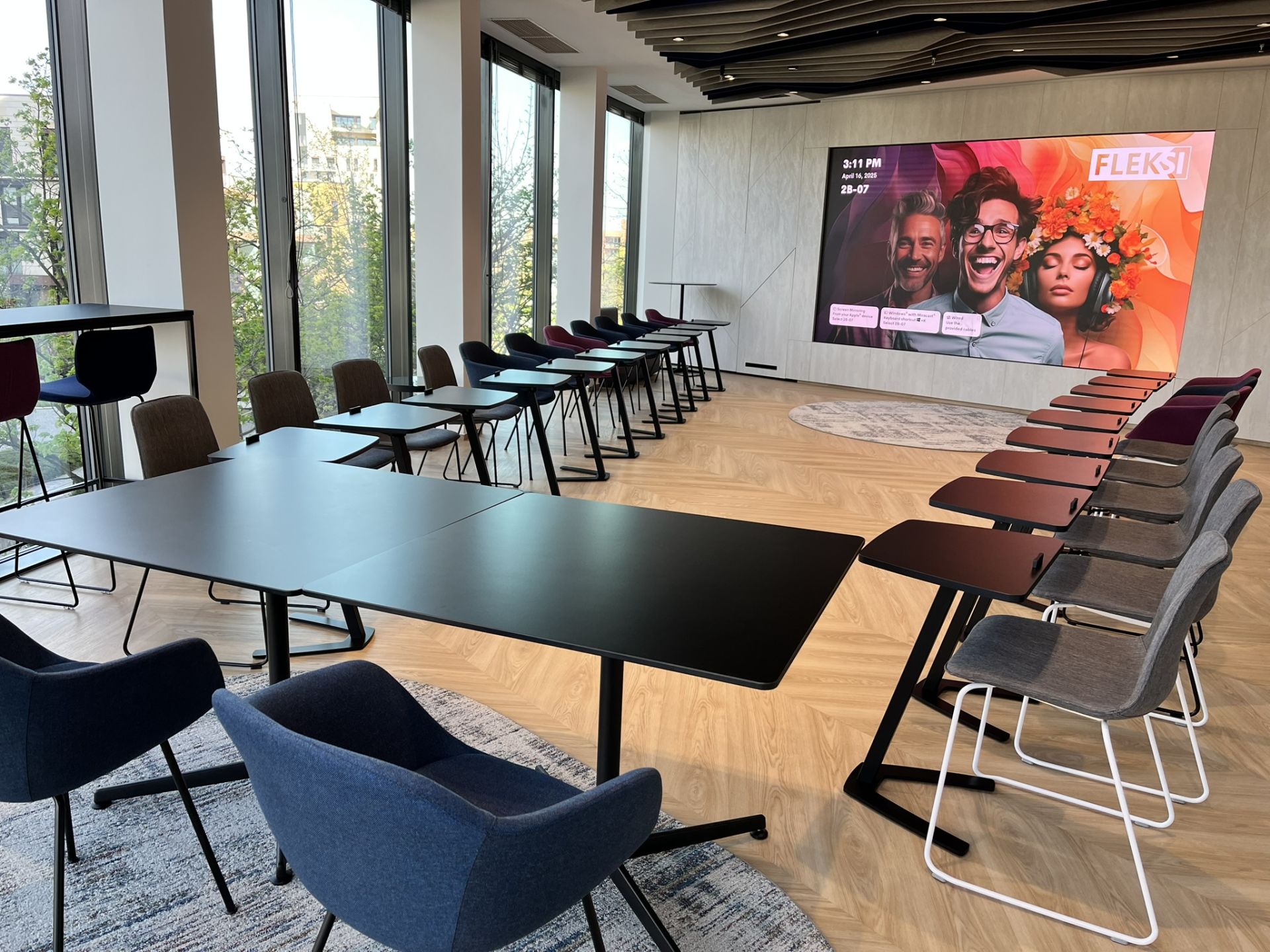 🔹 Vybavení: LED stěna 4 m, AV technika, videokonference, ozvučení, konferenční stolky pod laptop pro školení a jednání