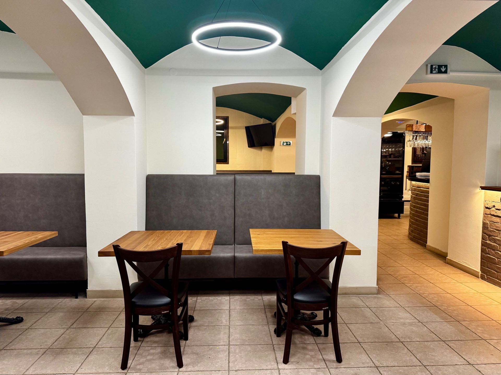 Hlavní sál se skládá z prostorného velkého sálu a menšího sálu umístěného na vyvýšeném pódiu. Toto řešení umožňuje flexibilní využití prostoru – velký sál je ideální pro větší skupiny, oslavy či firemní akce, zatímco menší sál na pódiu poskytuje intimnější atmosféru pro menší setkání, prezentace nebo speciální hosty. Díky členění na dvě části lze prostory využívat samostatně nebo je propojit do jednoho celku podle potřeb akce.