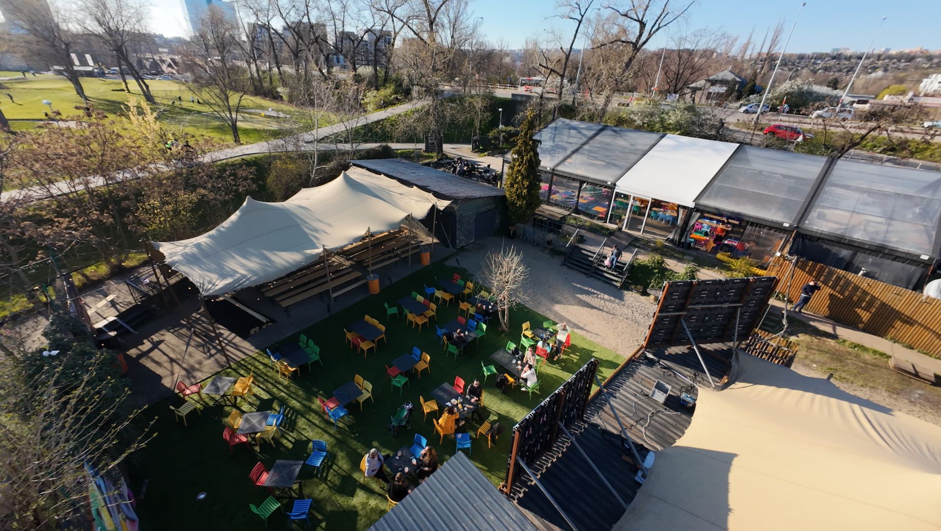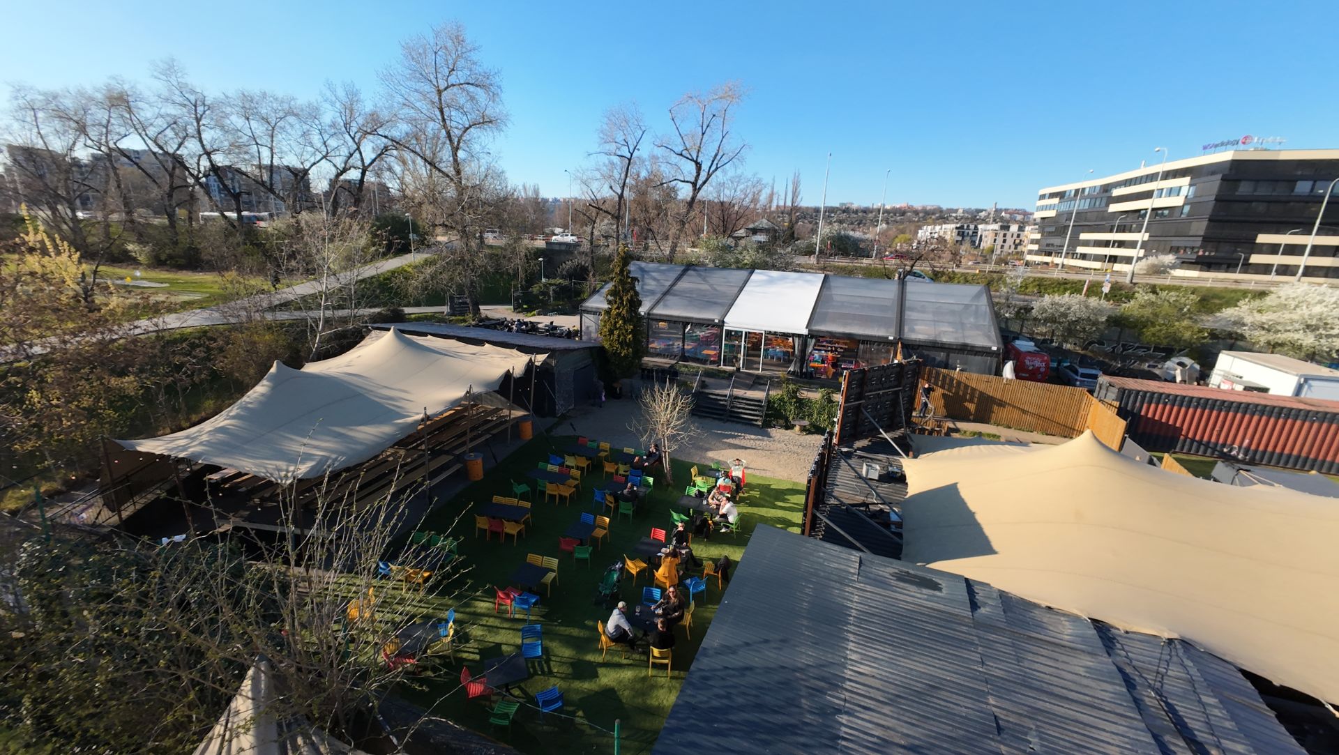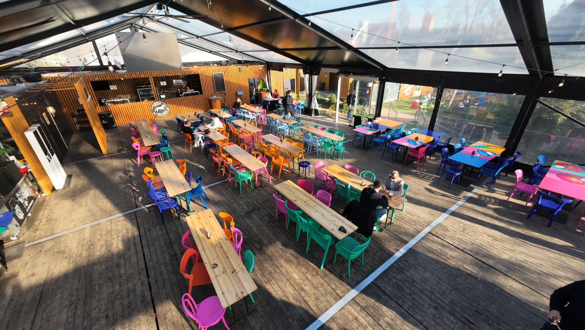 Uspořádání prostoru je dle požadavků klienta. Transparentní stan 15 × 25 m. Možnost vytápění až na 28 °C. Kapacita cca 320 míst - 40 beersetů, zastřešená plocha cca 525m2. Možnost umístění pódia.