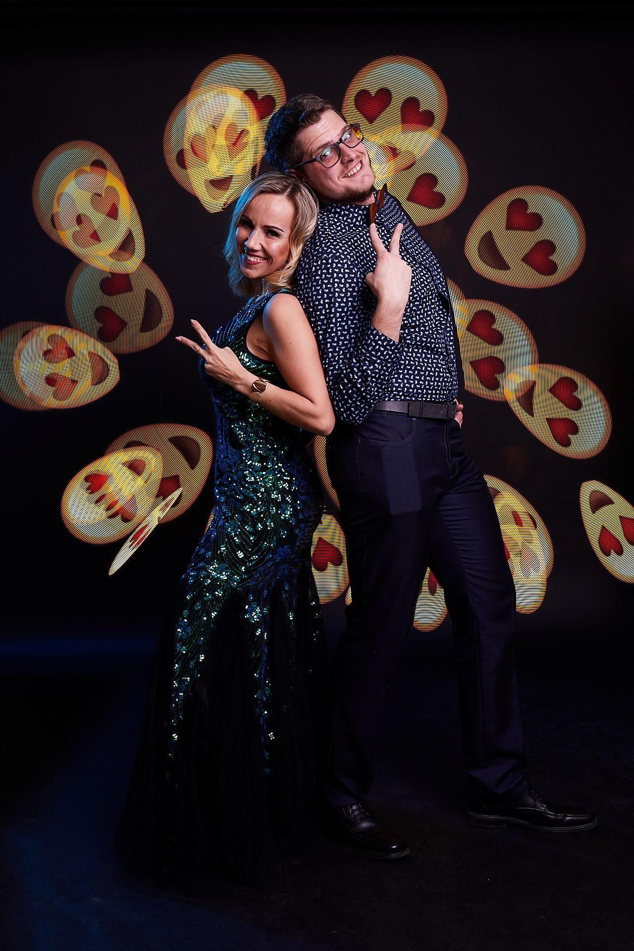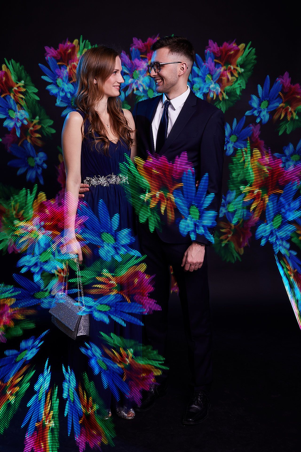 V našem fotokoutku nenajdete rozmanitá pozadí, ani rekvizity. Kouzlo originálních fotek zde vzniká pomocí malování světlem. Díky speciální technologii se návštěvníci během několika vteřin objeví uprostřed pestrobarevných obrazců.
