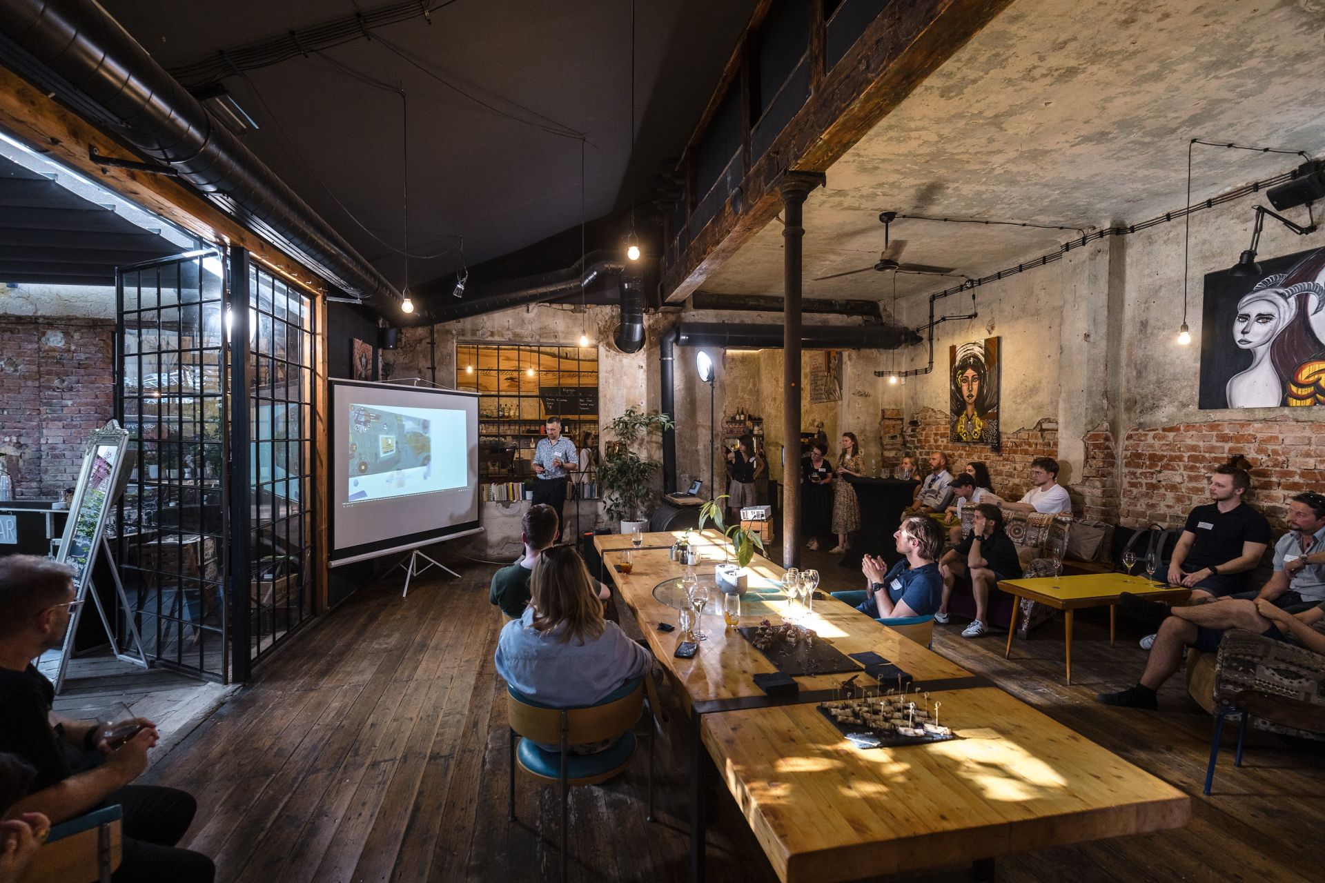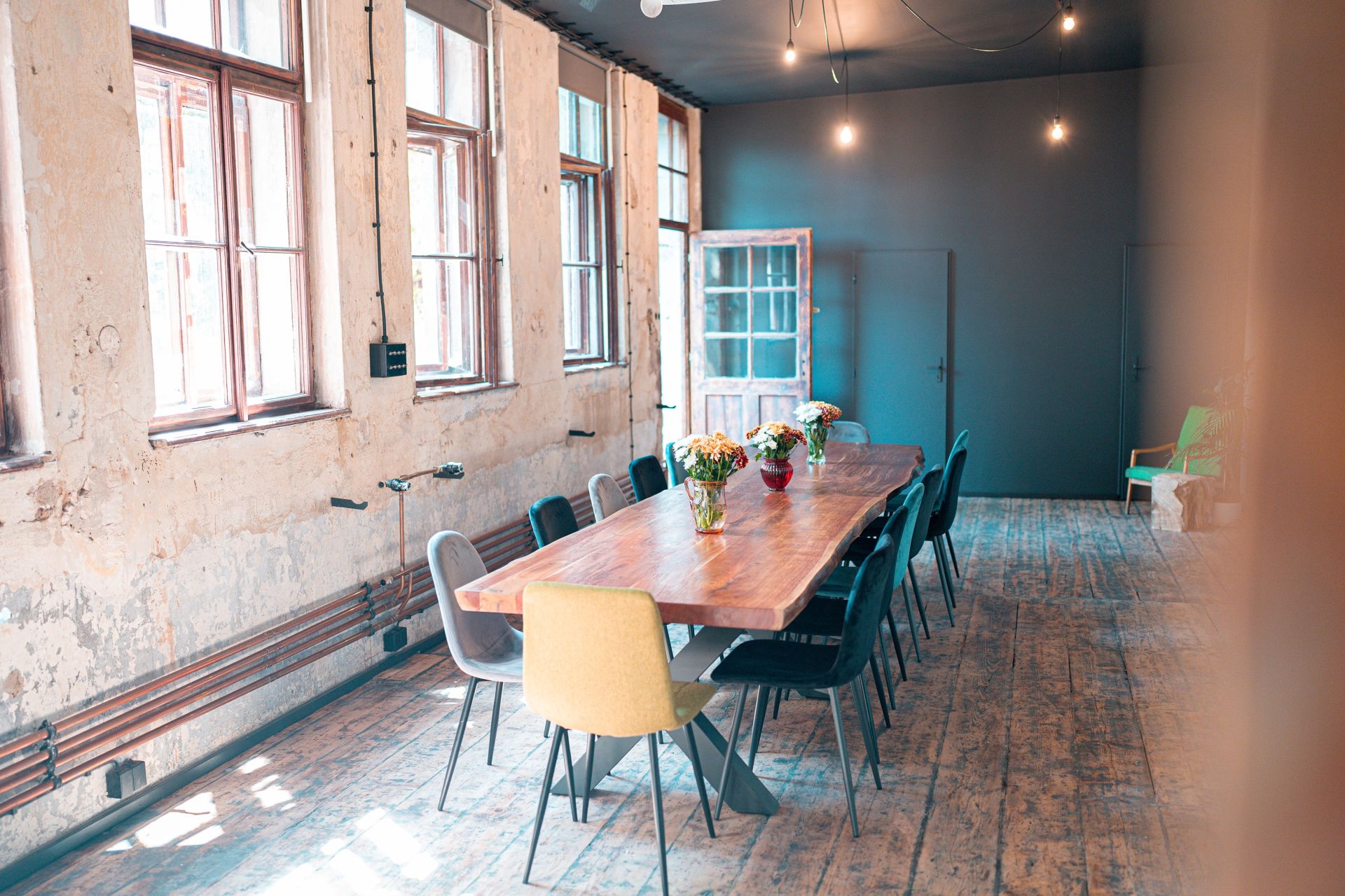 Hledáte místo, kde se můžete klidně soustředit na své myšlenky a kreativní nápady vám budou přicházet hned, jakmile se usadíte do pohodlných židlí? Pak je naše zasedací místnost v Kavárně co hledá jméno přesně to, co hledáte. Světlý interiér v industriálním stylu je skvělý pro firemní schůzky, brainstormingy nebo prezentace. Kromě toho si můžete být jisti, že vaše myšlenky budou podněcovány příjemnou atmosférou a inspirativním prostředím, které vytvoří ideální podmínky pro vaši akci. Dejte svým nápadům prostor k rozkvětu v naší zasedačce.