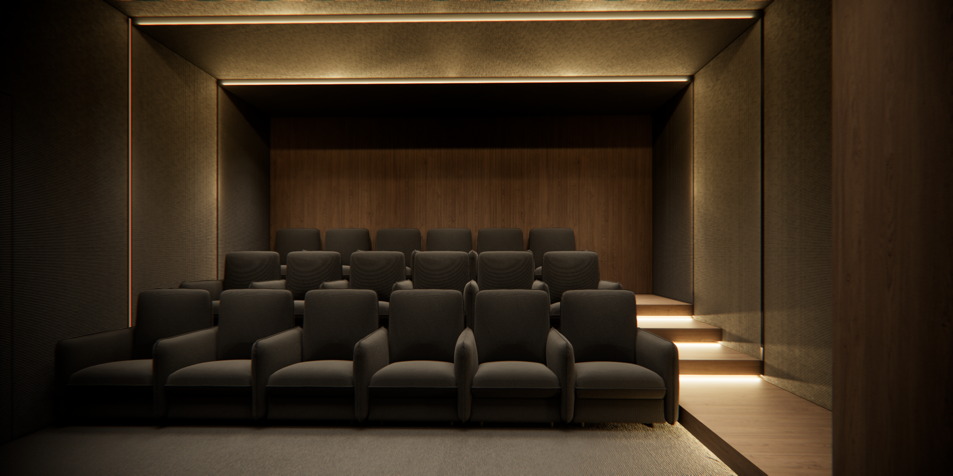 Komorní kino s kapacitou až 15 osob, ideální pro soukromé projekce, prezentace, školení nebo menší týmová setkání.