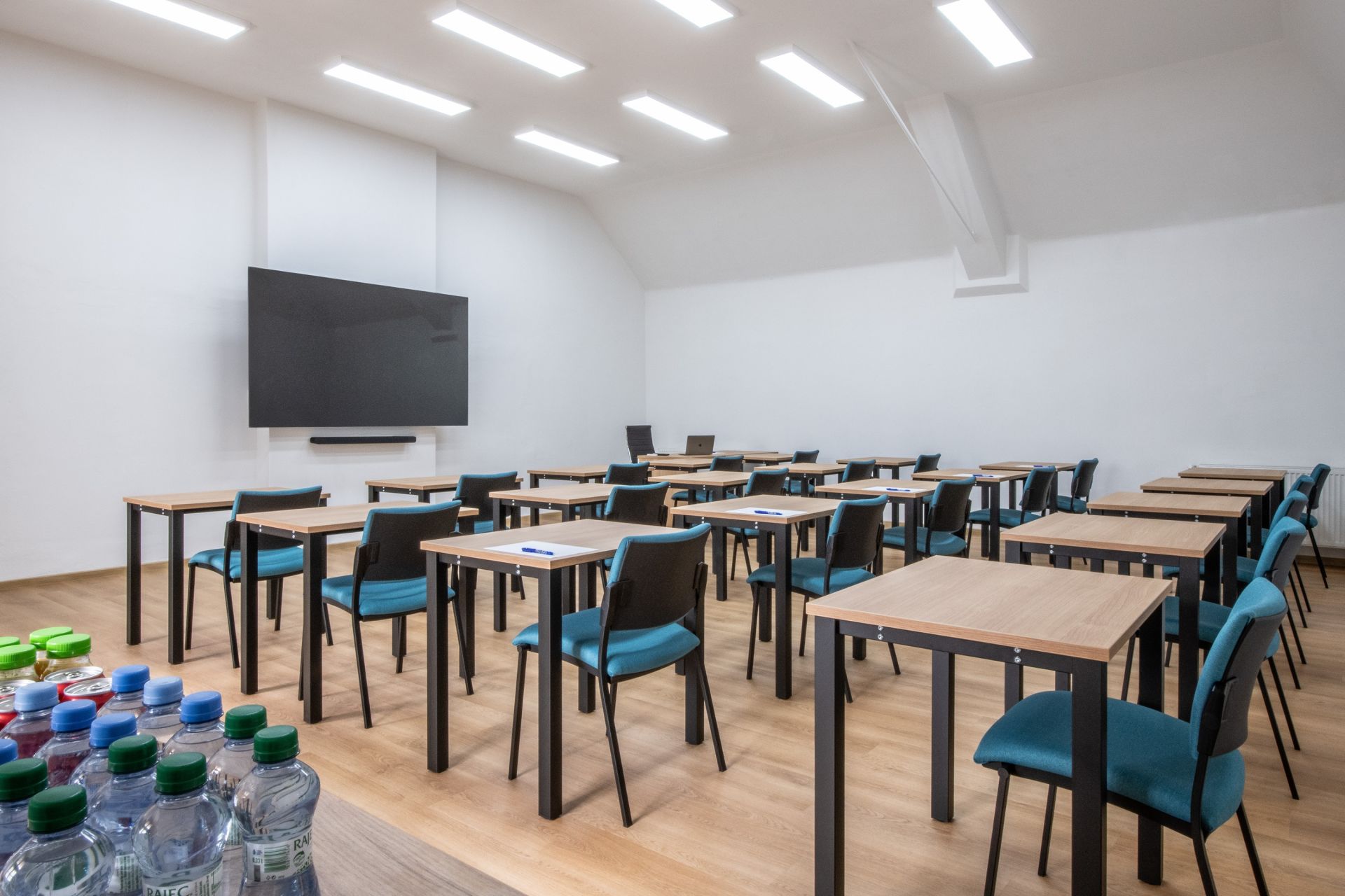 Malá zasedačka pro 25 osob při stolovém uspořádání, pro vaše firemní i soukromé akce, oslavy, večírky, školení i firemní prezentace.