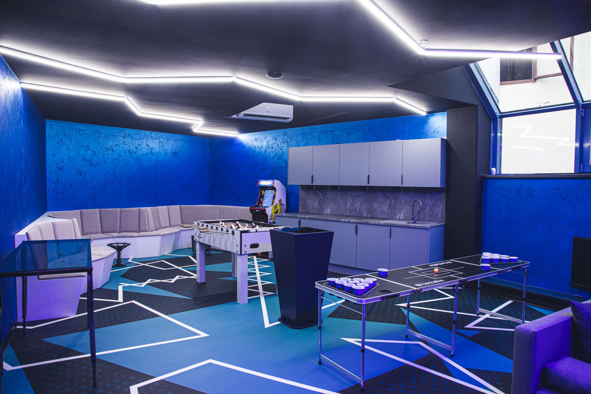 Po hře vás čeká relax v event roomu – pohodlné sedačky, stolní fotbálek, arkádové hry i prostor pro občerstvení. Skvělá příležitost rozebrat zážitky a navázat na týmovou spolupráci v neformální atmosféře.