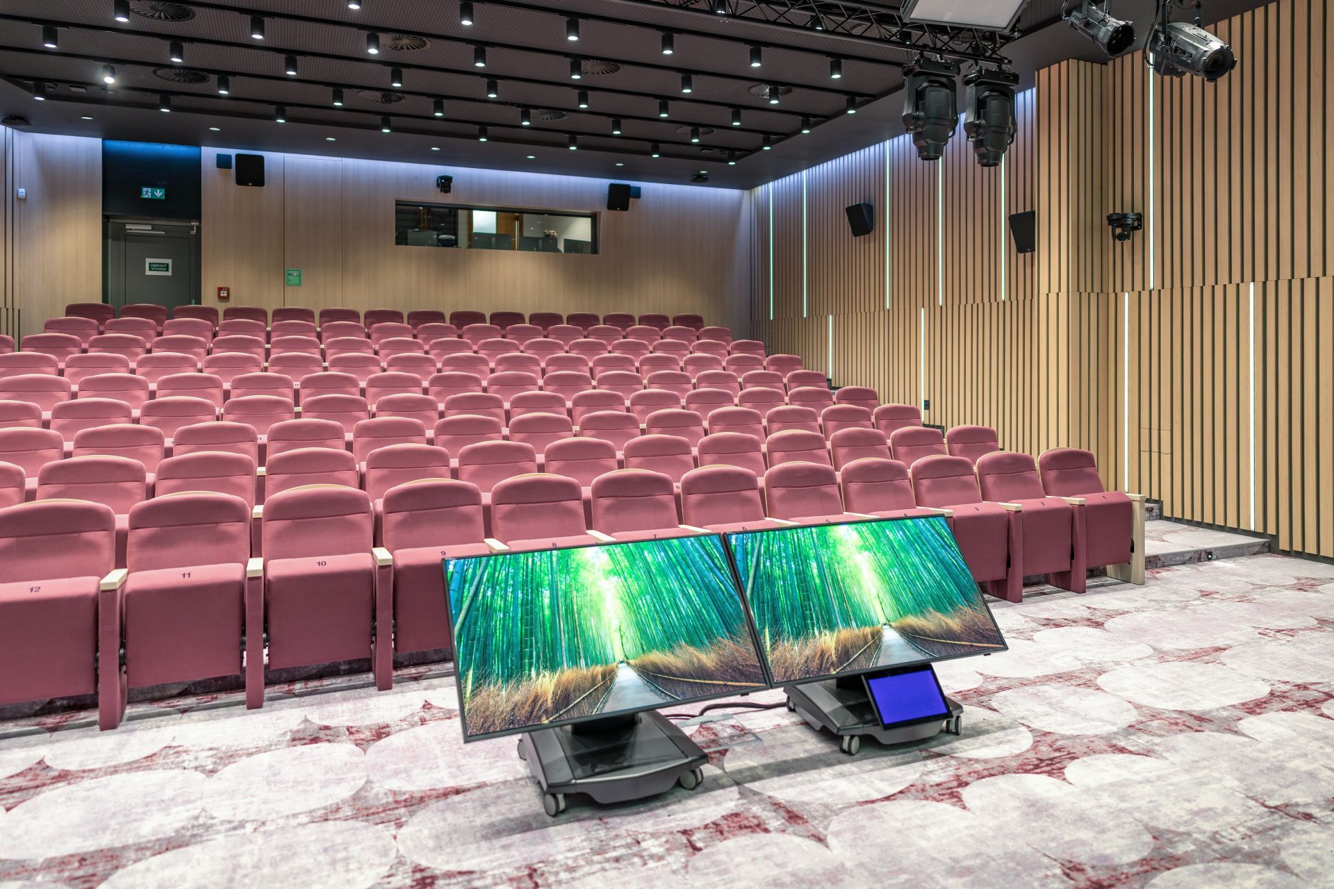 Nabízí 141 míst k sezení, obří LED obrazovku ve vysokém rozlišení a zvukový aparát, za který by se nemusel stydět nejeden hudební klub. Osvětlení sálu poté poskytuje nespočet variant pro vytvoření dokonalé atmosféry. Pro vaše potřeby je k dispozici také plně vybavená režie. Z jednoho místa tak můžete kompletně řídit celou událost.