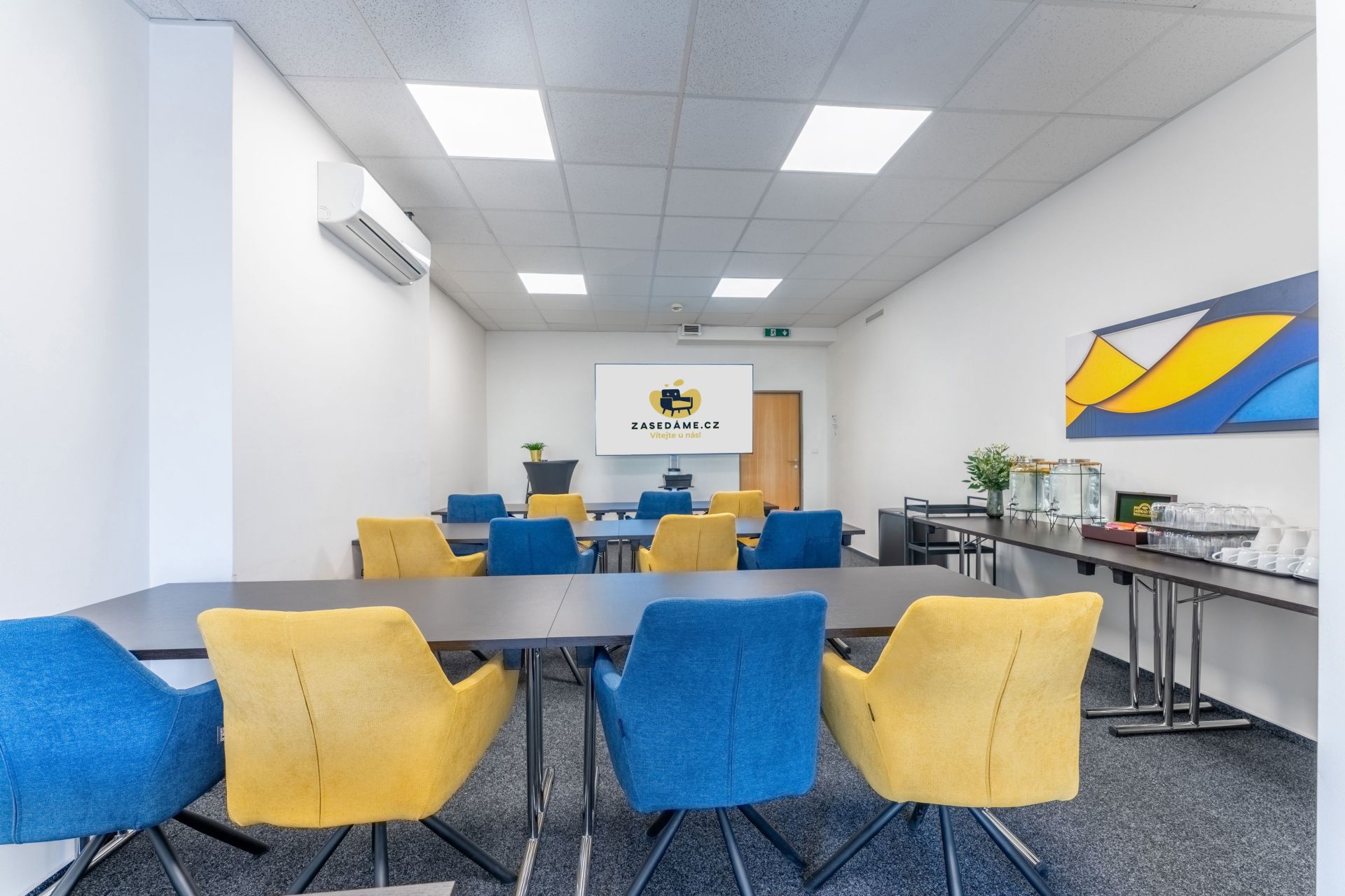 Moderní a útulná místnost přímo v srdci Prahy – ideální pro vaše školení, workshopy či porady až pro 25 osob.