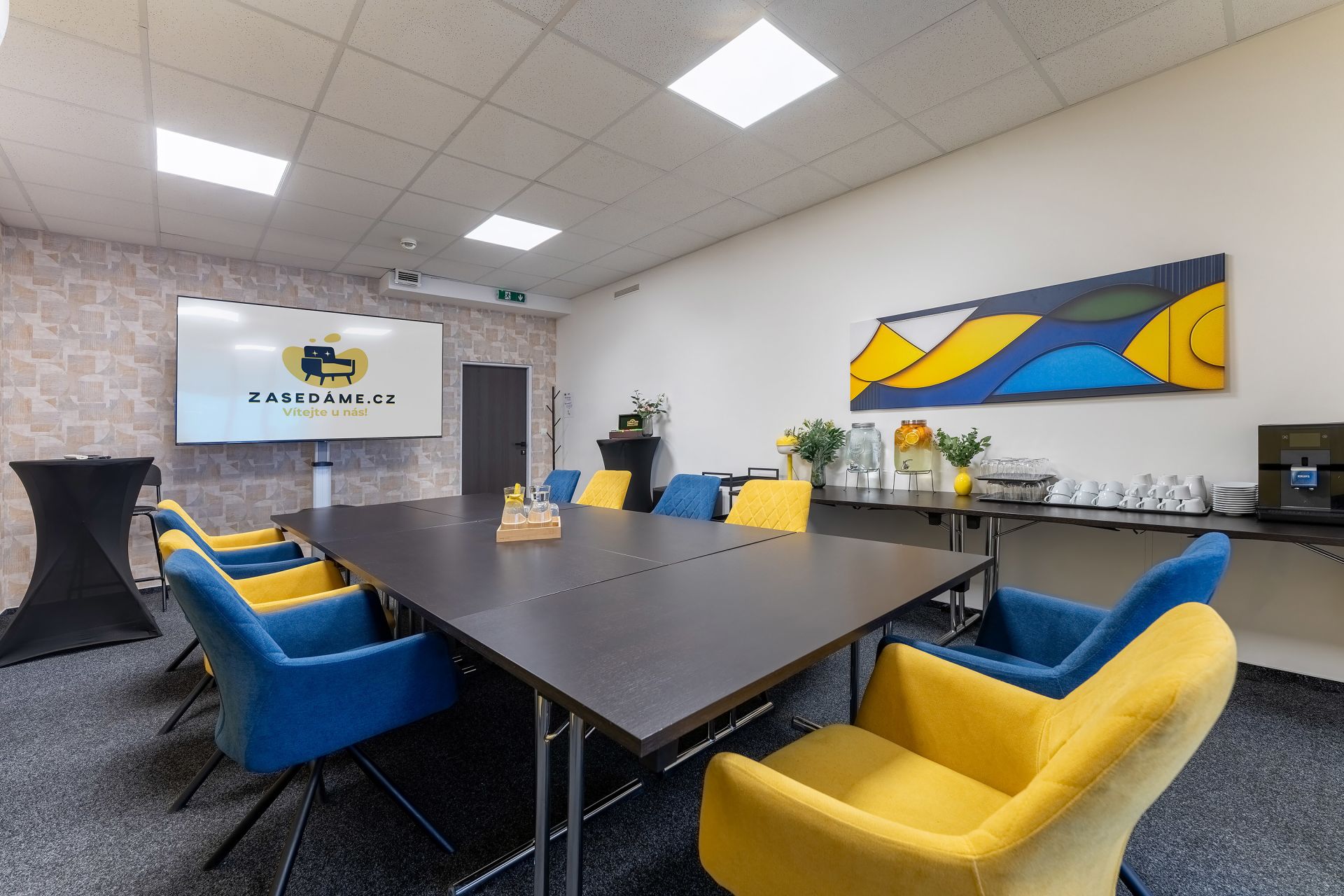Střední místnost Václavák nabízí ideální prostředí pro týmová školení, kreativní workshopy, porady i natáčení. Spojuje pohodlí, soukromí a profesionální zázemí v centru města.