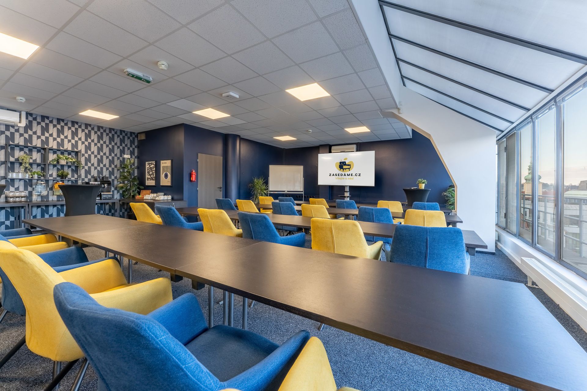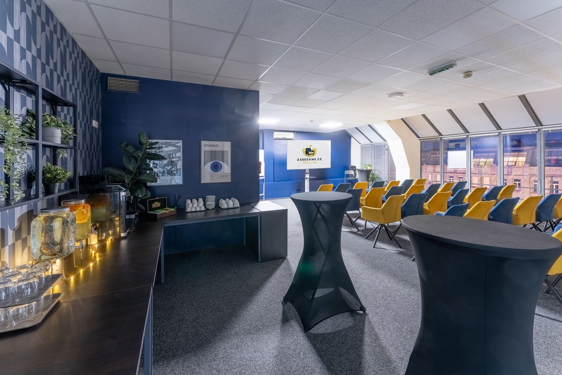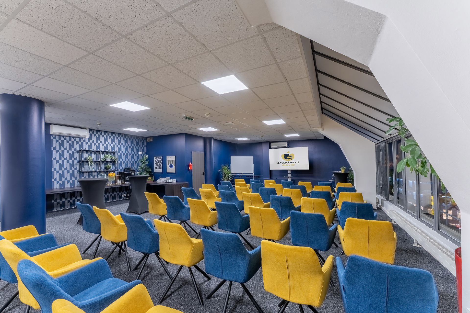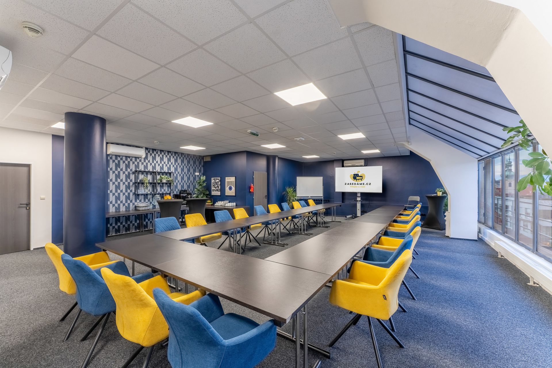 Prostorná a moderní velká místnost je ideální pro vaše školení, semináře či workshopy až pro 60 osob v samém centru Prahy.