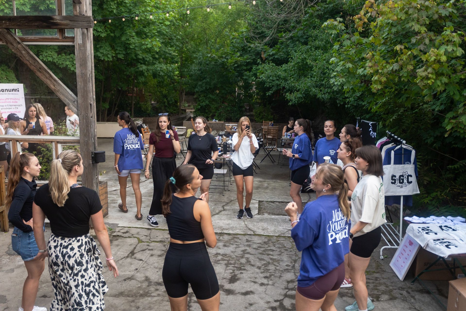 Letní posezení ve stínu stromů.