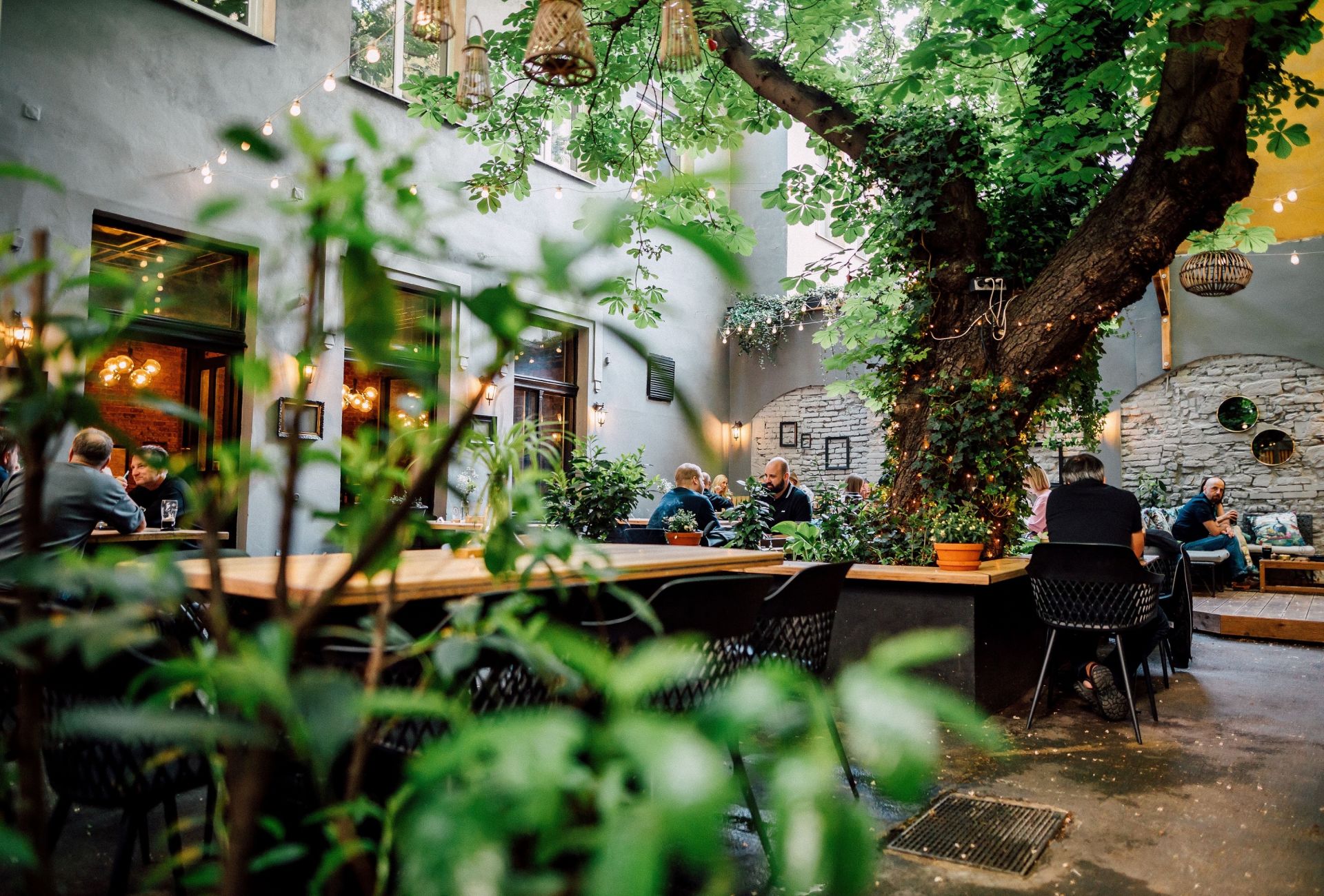Signifikantním prvkem zahrádky je stoletá lípa, která nejenže prostoru dodává jedinečný ráz, ale zároveň ho chrání před všemi druhy přírodních jevů – deštěm, větrem i slunečními paprsky. Prostor zahrádky nabízí překrásný výhled na rozsáhlou zahradu Anežského kláštera, jejíž součástí jsou sochařská díla českých autorů jako například Karel Malich, Michal Gabriel nebo František Skála.